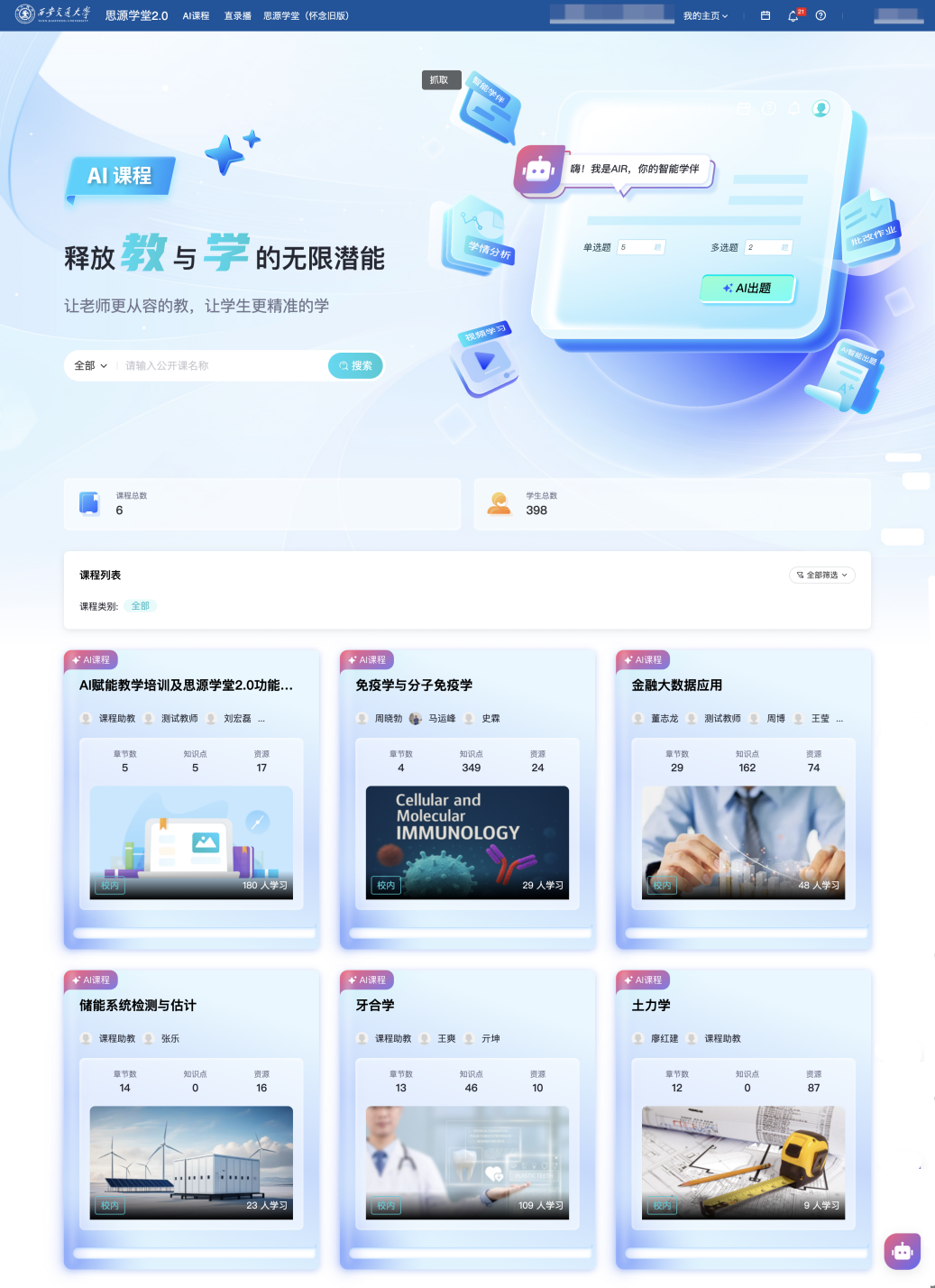 构成更多具有立异性、切实处理了留学生群体的焦点讲授痛点,开展针对性培训,西安交大全面摆设建成了新版思源私塾聪慧讲授平台(),为全国高档教育数字化转型供给了“交风雅案”。